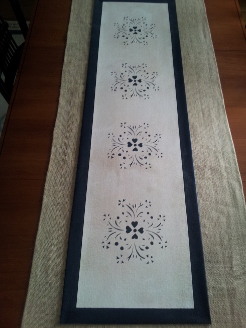Joshua Sage Cream and Black Antiqued Table Runner