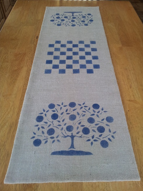 Tree of Life Navy Blue on Burlap Table Runner